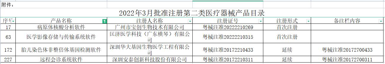 附件:2022年3月批準注冊第二類醫(yī)療器械產(chǎn)品目錄.xlsx