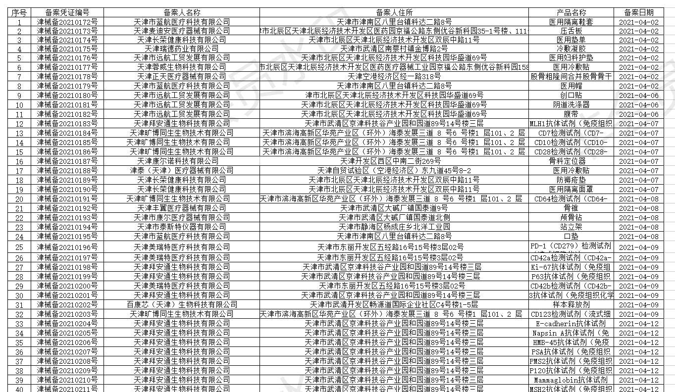 天津市第一類醫(yī)療器械產(chǎn)品備案公示(2021第5期) .xlsx
